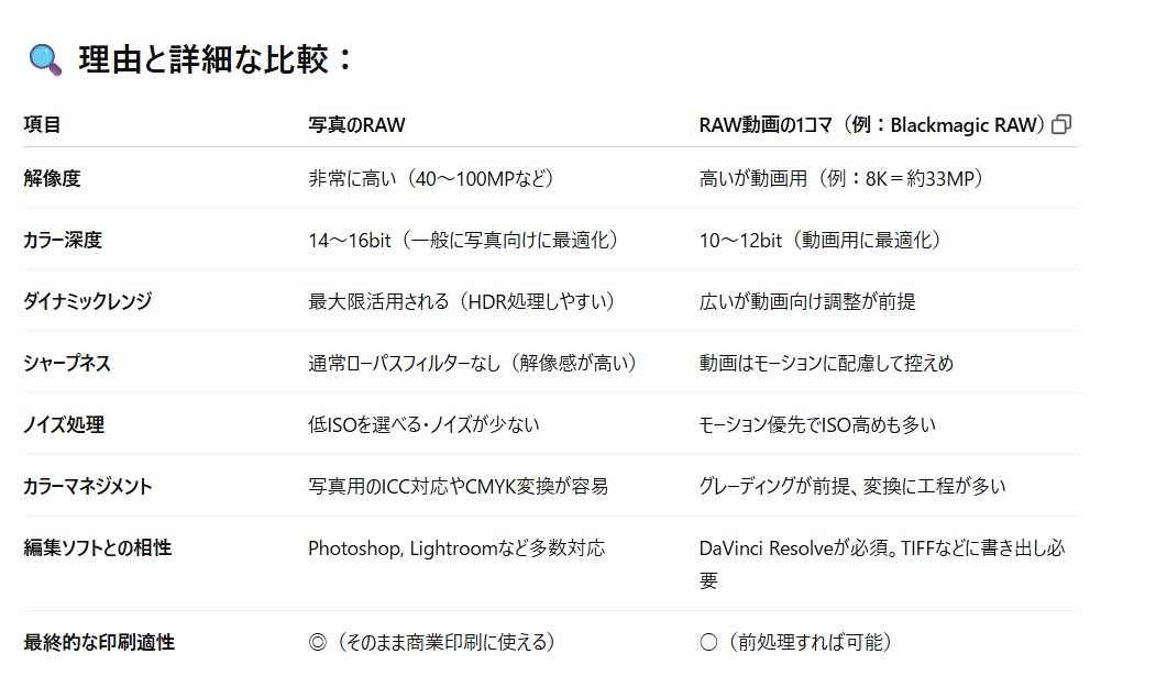 RAW動画の1コマは「あくまで代用」的に使う形です。